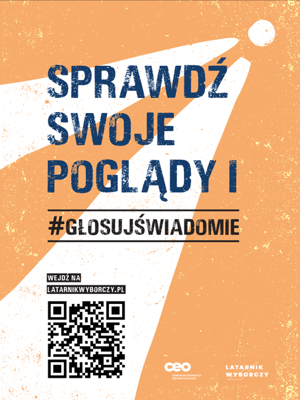 - plakat i wlepkę promujące „Latarnika Wyborczego” przed wyborami do Sejmu i Senatu RP.